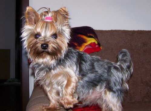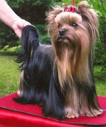 Yorkšírský teriér má malú hlavu s krátkym ňucháčom a tmavými, bystrými očami. Nozdry musia byť čierne. Uši sú malé, vztýčené, majú trojuholníkovitý tvar a sú pokryté krátkou, tmavou srsťou. Telo je kompaktné s rovným chrbtom a pevnými bedrami. Chvost sa kupíruje, je nesený nad úrovňou chrbtu a má šedomodrú farbu.
